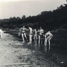Snímky zachycující gymnastické soustředění cvičenců a cvičenek ze Bzence na rekreačním středisku Littner v roce 1973. (zdroj: Expozice města Bzence – věnoval B. Kumpán)