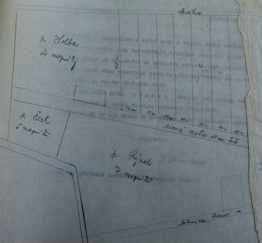 V navázání na žádost o udělení domovského práva v Bzenci ze dne 6. t. m. dovoluji si žádati o odprodej vhodné stavební plochy pro budoucí můj podnik – továrnu na slaměné obaly, kterou hodlám v Bzenci vybudovati, ovšem předpokládám, že mně nejen pro odprodej budou stanoveny přijatelné a odpovídající podmínky, ale v prvé řadě přiznáním domovského práva mně umožněno získání živnostenského oprávnění, na něž s ohledem na pokročilou roční dobu spěchám a na které jest kladné vyřízení mé žádosti o živnostenský list vázáno.