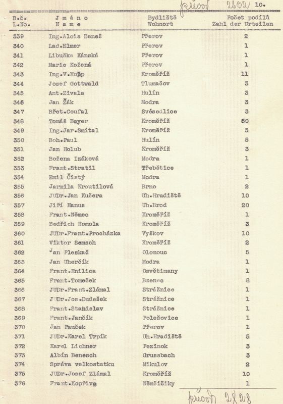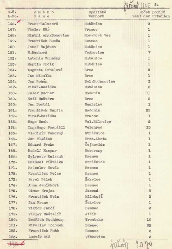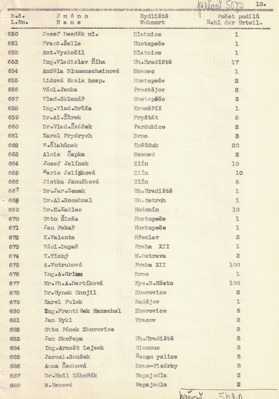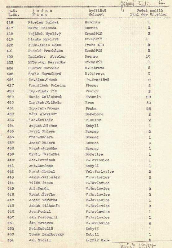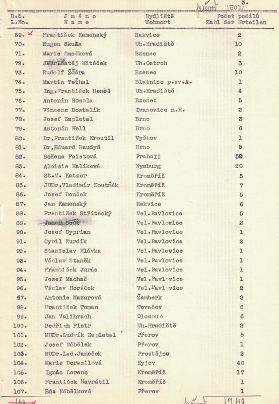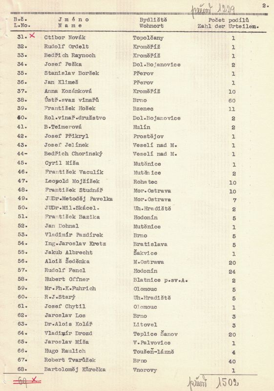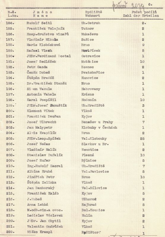 U každého člena jsme napsali jméno a příjmení, bydliště a kolik vlastní podílů. – V žádosti jsme pak uvedli, kolik máme celkem členů, kolik z těchto jest árijců a s jakým kapitálem a kolik neárijců a s jakým kapitálem.