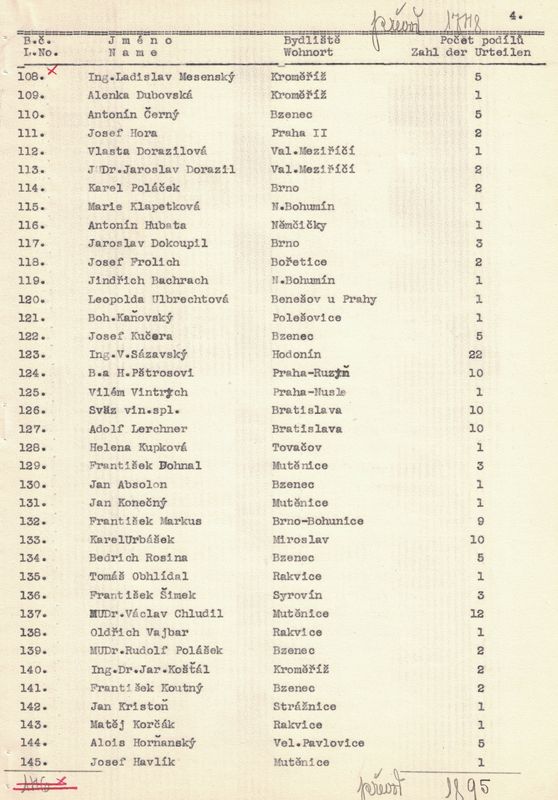 d/ dále legalisovaný výpis z členské matriky, v kterém jsme postupně uvedli všechny naše členy, rozdělené na členy árijce a členy neárijce.