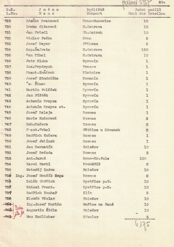 zusammen ……….. 760 členů (árijských) s 6175 podíly