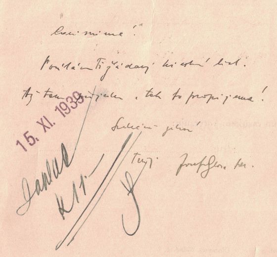 Raději vyzvěte dotyčné pány, aby si je do soboty hleděli opatřiti. Podle včerejší rozmluvy s Kudláčkem musíme ještě mimo to předložiti místopřísežné prohlášení o tom, že kapitál družstva není židovský. Příslušný text tohoto prohlášení Vám pošle přímo dopisem rada Kudláček. Je nutno tyto věci podat co nejdříve.
