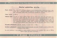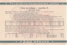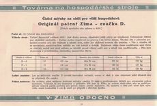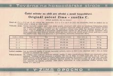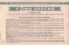 Dopis a katalog továrny V. ZIMA Opočno (1932)