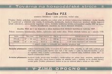 Skeny obchodního dopisu a bohatě ilustrovaného katalogu továrny na hospodářské stroje z Opočna byly 1. února 1932 zaslány bzeneckému kováři Vojtěchu Vaňkovi. Dopis představuje zajímavý doklad tehdejší obchodní praxe: firma v něm nabízí finanční prémii až 200 Kč za zprostředkování kontaktů na zájemce o stroje z řad místních rolníků, kteří navštěvovali místního kováře.