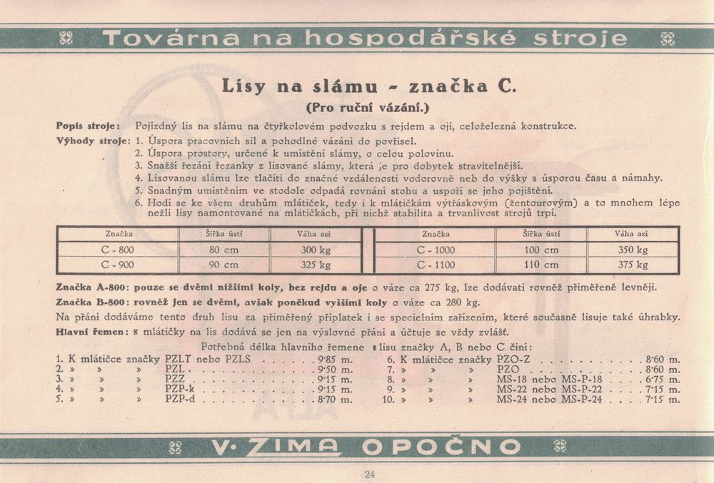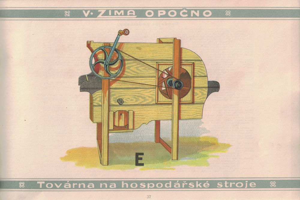 Skeny obchodního dopisu a bohatě ilustrovaného katalogu továrny na hospodářské stroje z Opočna byly 1. února 1932 zaslány bzeneckému kováři Vojtěchu Vaňkovi. Dopis představuje zajímavý doklad tehdejší obchodní praxe: firma v něm nabízí finanční prémii až 200 Kč za zprostředkování kontaktů na zájemce o stroje z řad místních rolníků, kteří navštěvovali místního kováře.