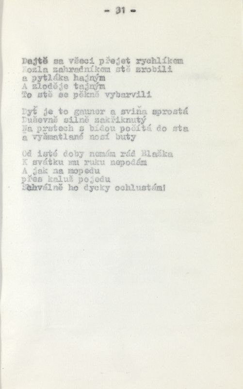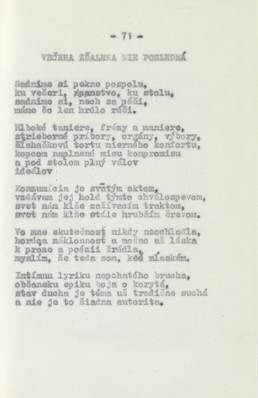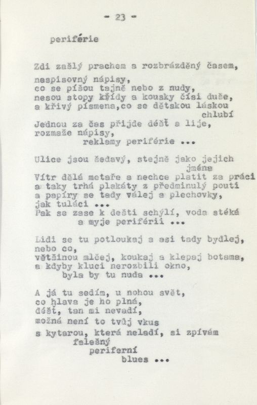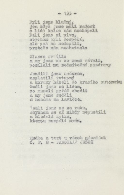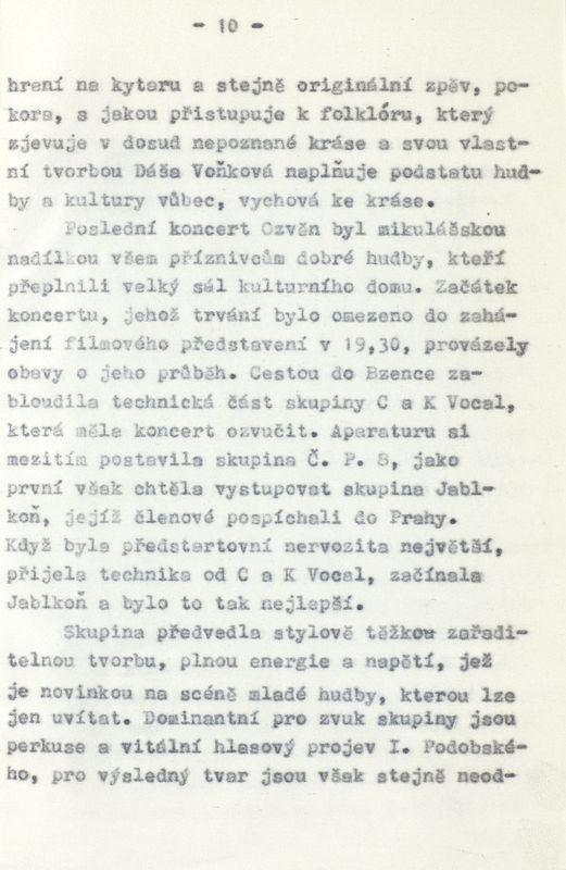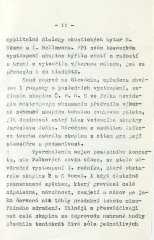 Snad poprvé na Slovácku, opředena chválou i rozpaky z posledních vystoupení, začínala skupina Č. P. S. ve folku nevídaným nástrojovým obsazením předvedla výborně sehraná skupina bohatou zvukovou paletu, jíž dominoval ostrý hlas vedoucího skupiny Jaroslava Ježka. Náročnou a osobitou Ježkovu tvorbu zahrála skupina s citem pro její atmosféru a podmanivost.