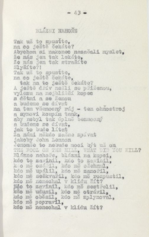 3. listopadu, 16:00 – BRNO – Slávek Janoušek, Václav Koubek, j.h., Jarda Nejezchleba;