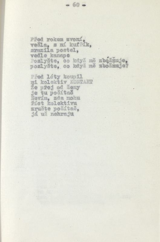 Nejistota a zmatky provázely přípravu i konání koncertu pražských písničkářů. Nejdříve se omluvila Dáša Voňová dopisem, ve kterém napsala: „…na základě mého současného sociálního postavení a statutu lidového hudebníka jsem si ověřila, že další vystupování je pro mne neúnosné.“ V dalších jednáních své rozhodnutí změnila a na Folkových ozvěnách vystoupila. Týden před konáním koncertu jsme zjistili, že sál Kulturního domu, kde se předchozí vystoupení konala, je v den koncertu obsazený. Po složitých jednáních se nakonec uskutečnil v akusticky nepříliš vhodném a neútulném sále Sokolovny.