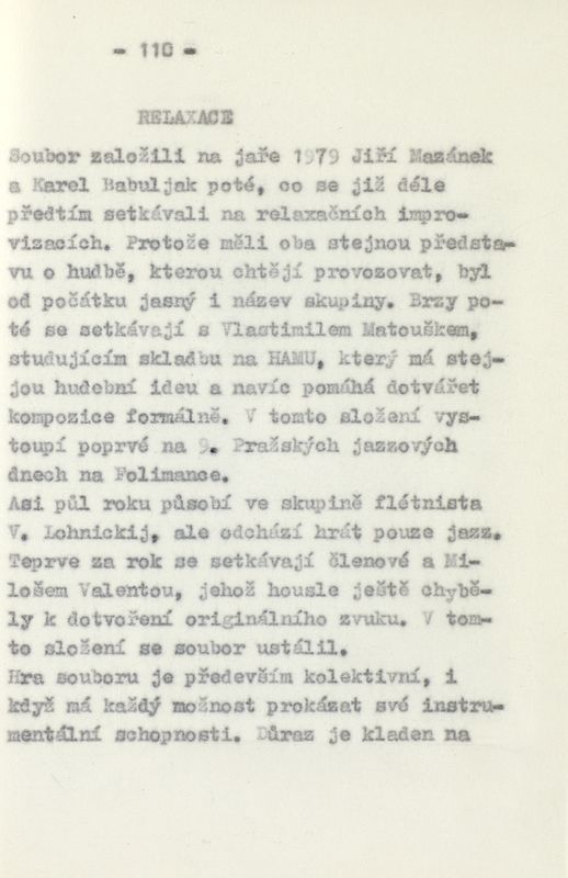 Sympaticky působící kamarádské muzicírováni členů skupiny Relaxace v šatně, jakoby se na pódiu vytratilo. Posluchačsky náročná tvorba skupiny inspirovaná tradiční indickou hubou, působila většinou monotónně, vnitřní napětí a zaujetí, s jakým k hudbě přistupují jednotliví hudebníci, nenalezlo adekvátní odezvu u publika.