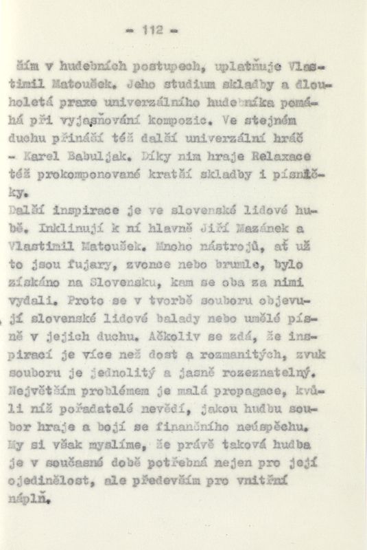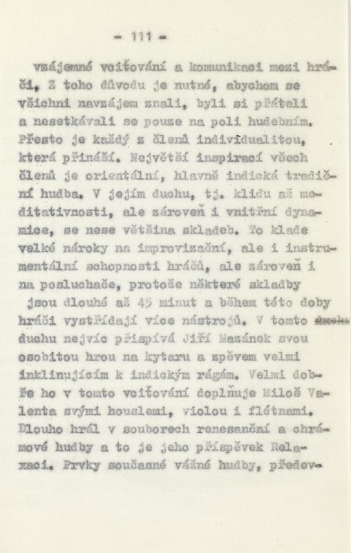 Skupina předvedla stylově těžce zařaditelnou tvorbu, plnou energie a napětí, jež je novinkou na scéně mladé hudby, kterou lze jen uvítat. Dominantní pro zvuk skupiny jsou perkuse a vitální hlasový projev I. Podobského, pro výsledný tvar jsou však stejně neodmyslitelné dialogy akustických kytar M Němce a I. Bellmanna. Při svém bzeneckém vystoupení skupina hýřila chutí a radostí z hraní a vytvořila výbornou náladu, jež se přenesla i do hlediště.