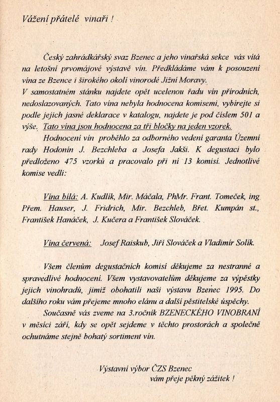 Katalog k májové výstavě vín 1995